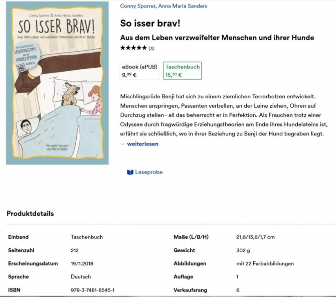 07. Februar 2019Gestern bei Amazon ganz weit nach oben geklettert, zieht SO ISSER BRAV! heute auch bei Thalia nach: Thalia Deutschland Rang 43, Thalia Österreich sogar Rang 6. Auch wenn ich mich wiederhole: Wir freuen uns!