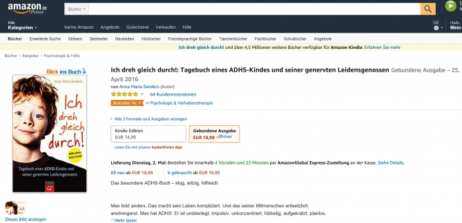28. April 2017Vor einem Jahr erschien mein “Max” und immer noch ist er bei Amazon Bestseller in der Kategorie “Psychologie und Verhaltenstherapie”. Ein Dankeschön an all die treuen Leser und auch DANKE für die überwältigenden Rückmeldungen zu meinem Herzensbuch.